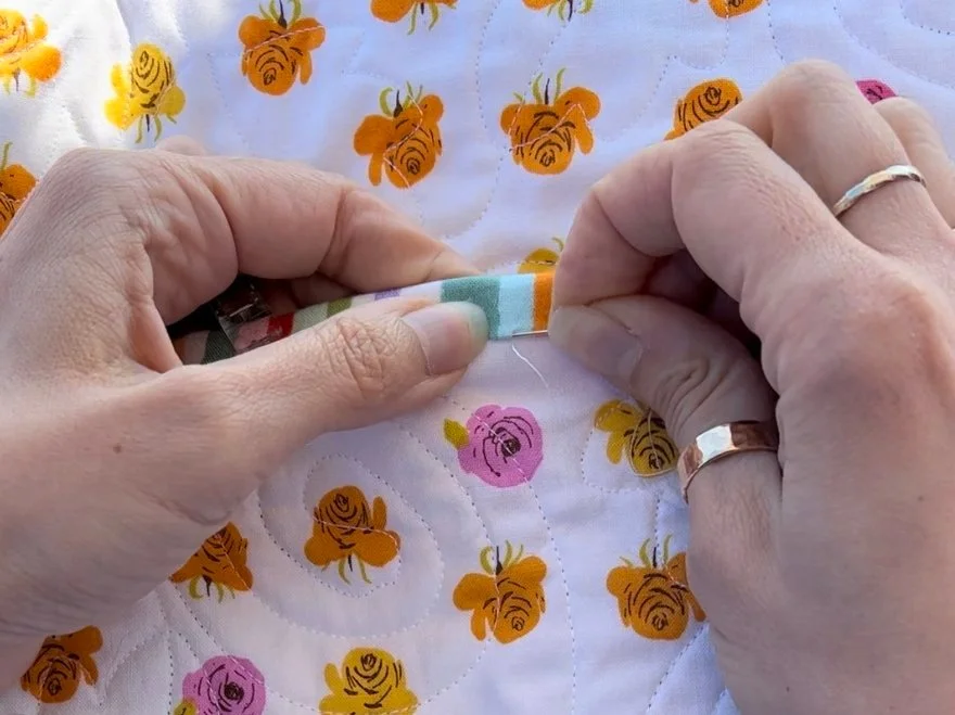 No binding? No problem! We will make and attach binding on any quilt - your machine quilted, hand quilted, or longarmed quilts. Choose from flange binding or hand sewn binding, or have it sewn on a single side as an add-on to your longarm service.